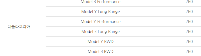 모델 Y 전기차 보조금 : 260만 원