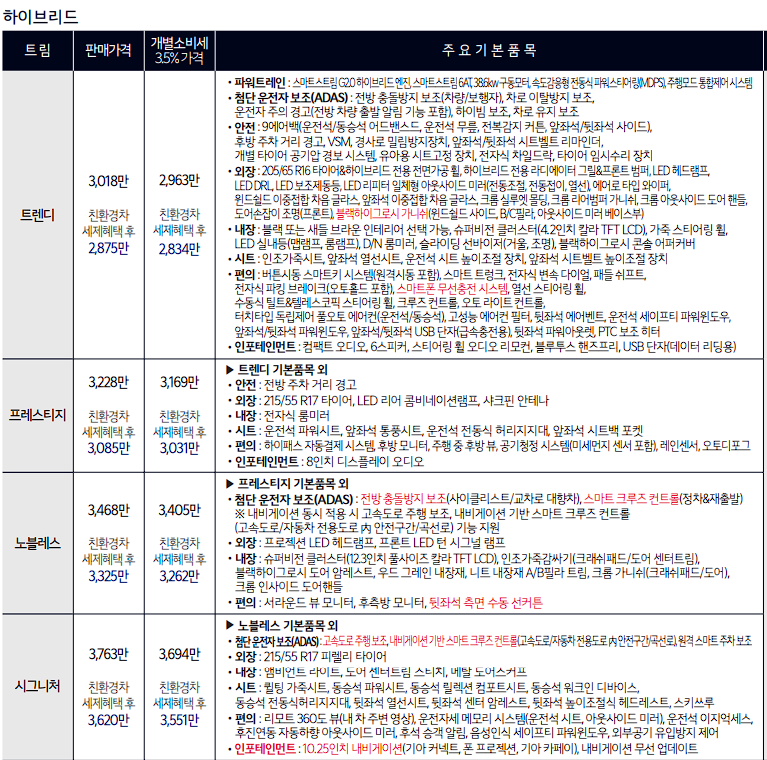 기아 k5 하이브리드 노블레스 가격