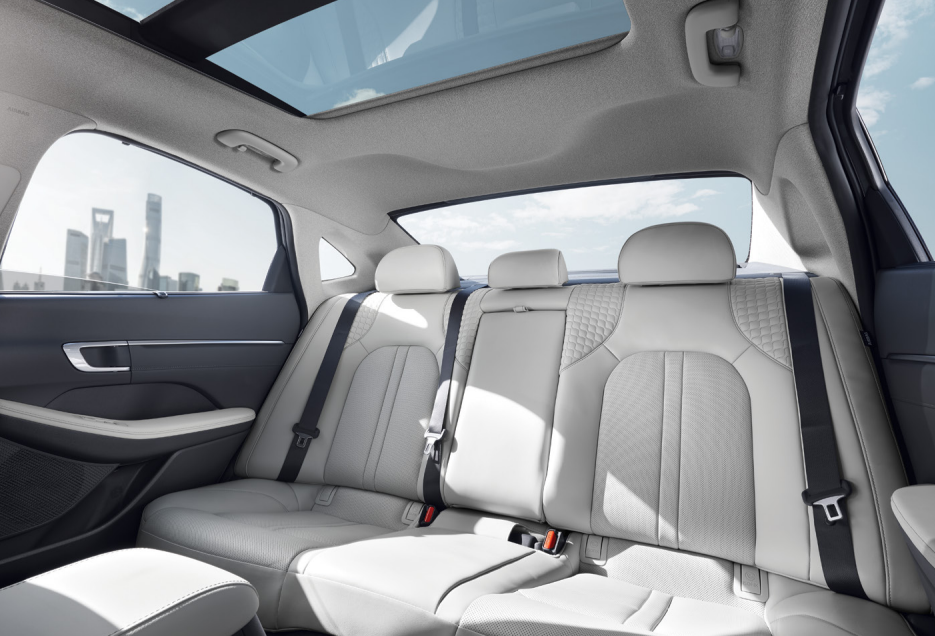 쏘나타 하이브리드 2열 좌석은 중형차답게 넉넉한 공간을 보여줍니다.