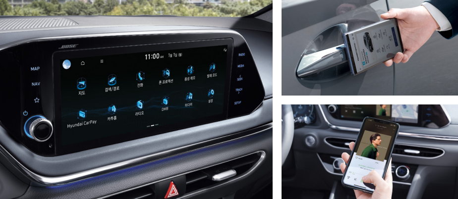 음성인식 내비게이션, 현대 디지털 키, 블루투스 멀티 커넥션 등의 기능도 적용하여 운전자의 편의성을 높여주고 있습니다.