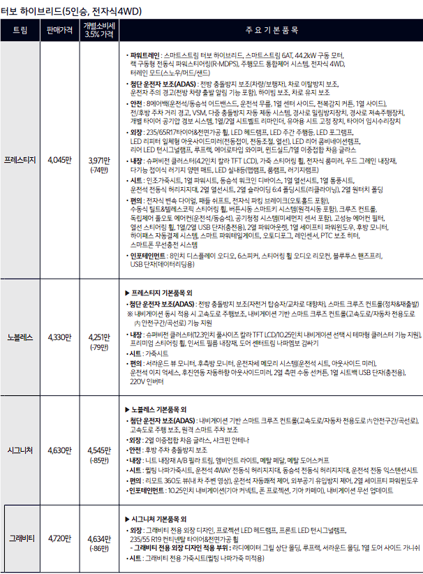 쏘렌토 하이브리드 프레스티지 가격