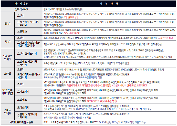쏘렌토 하이브리드 4wd, 사륜구동 가격표