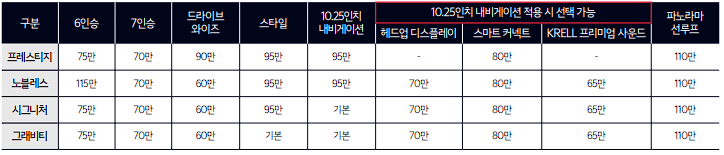 쏘렌토 하이브리드 옵션 가격표