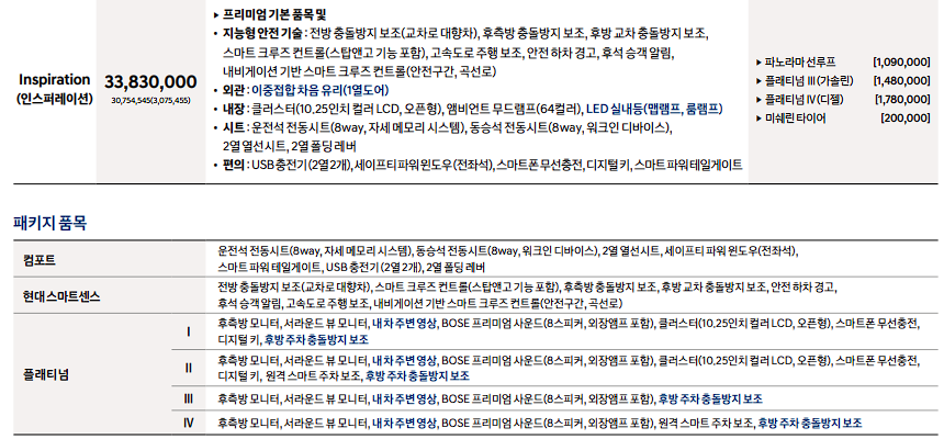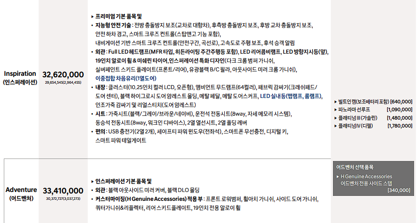 투싼 가솔린 인스퍼레이션 가격 : 32,620,000원