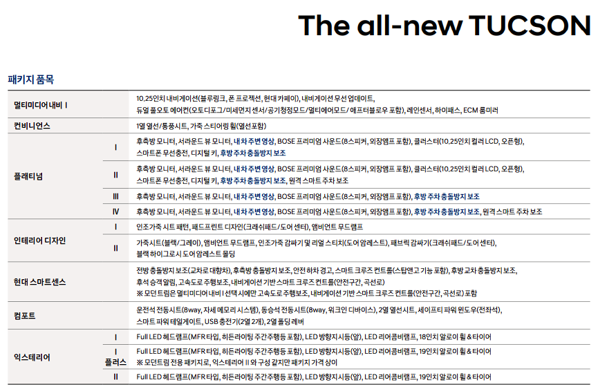 • 투싼 가격표