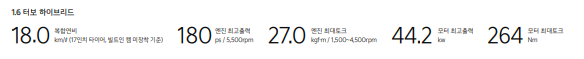 180마력의 출력에 44.2kw의 전기모터 힘까지 더해져 충분한 힘을 발휘합니다.