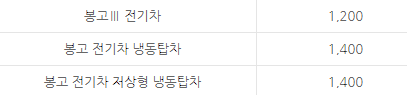 봉고 3 탑차 전기차 보조금 : 1400만 원