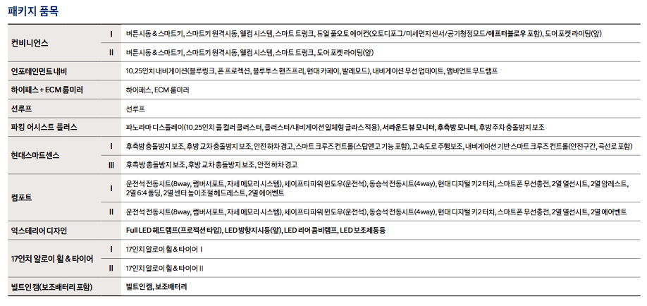 특히, 가장 기본 트림에서 8인치 디스플레이 오디오, 지능형 안전기술, 가족시트 등이 제공되어 편의성을 높여줍니다.