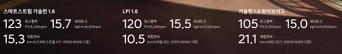 물론, lpi 엔진과 하이브리드 엔진도 선택이 가능합니다.