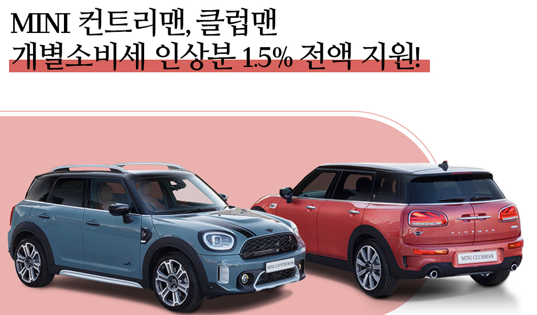 미니 클럽맨 구매 고객은 개별 소비세 인상분 1.5%에 대하여 할인 혜택을 받을 수 있습니다.