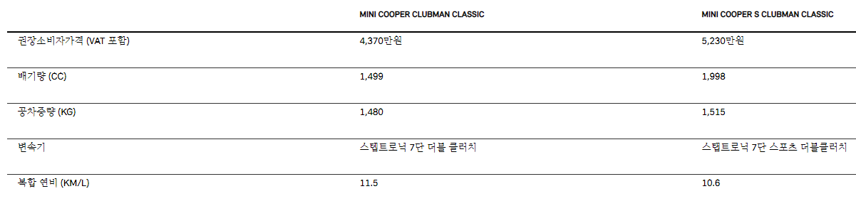 미니 클럽맨과 클럽맨 s로 나누어 판매 중이며,