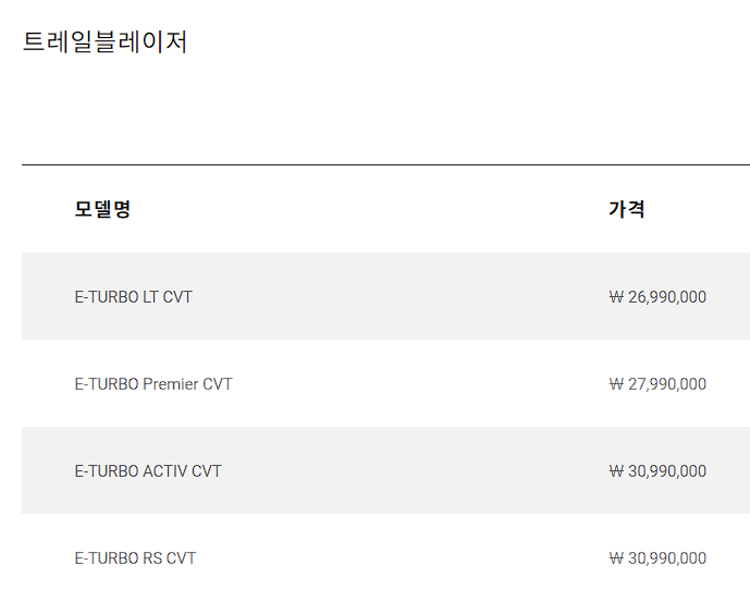 트레일 블레이저 4가지 트림별 가격을 알아보겠습니다.
