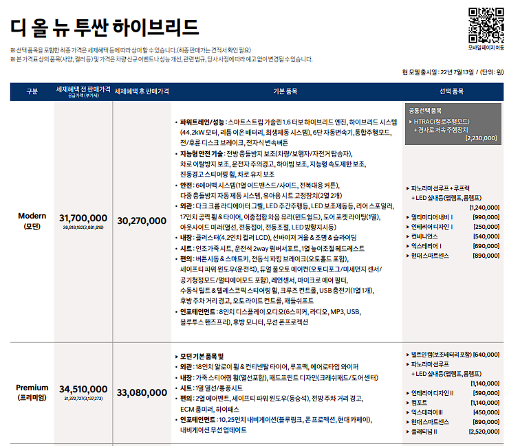 자동차 가격이 전반적으로 인상되는 상황에서 더 뉴 투싼 하이브리드 가격 인상 폭은 크지 않길 바라봅니다.