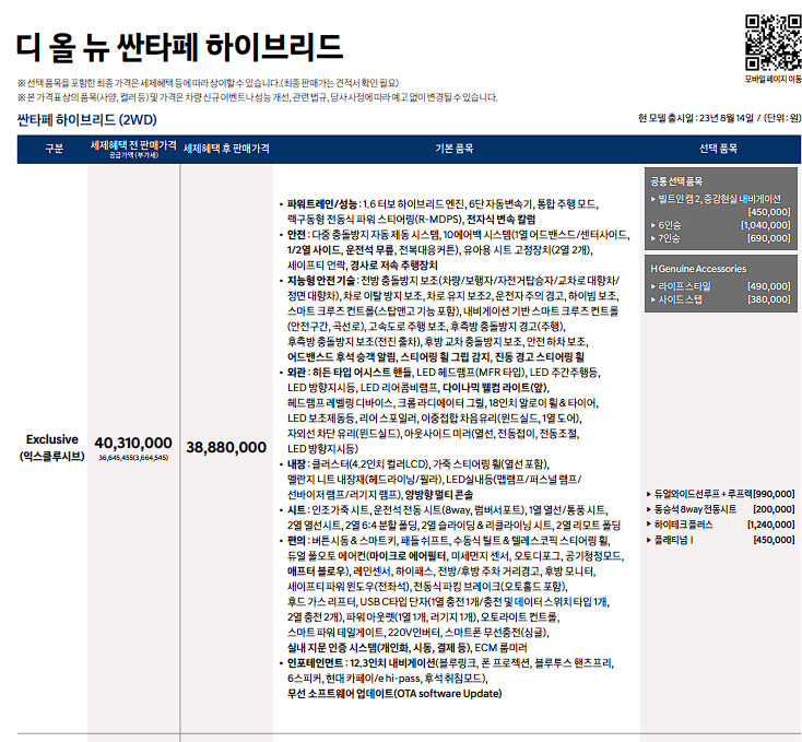 싼타페 하이브리드 가격