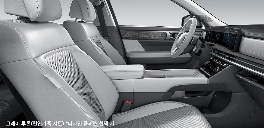 블랙 색상이 다소 칙칙할 수도 있습니다. 화사한 느낌의 싼타페 하이브리드 실내는 라이트 베이지와 그레이 투톤 색상입니다. 이 두 색상은 어느 정도 관리하실 수 있는 분들에게는 추천 색상입니다.