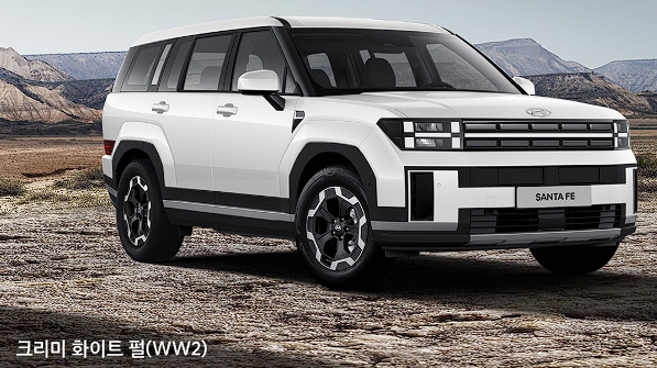 검정, 화이트 레드, 그레이, 크림, 블루, 그린, 브라운 색상으로 생각하시면 2024 싼타페 색상 선택이 쉽습니다.