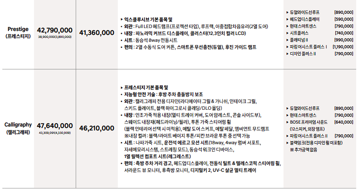 2024 싼타페 하이브리드 색상은? 옵션, 가격, 제원, 연비