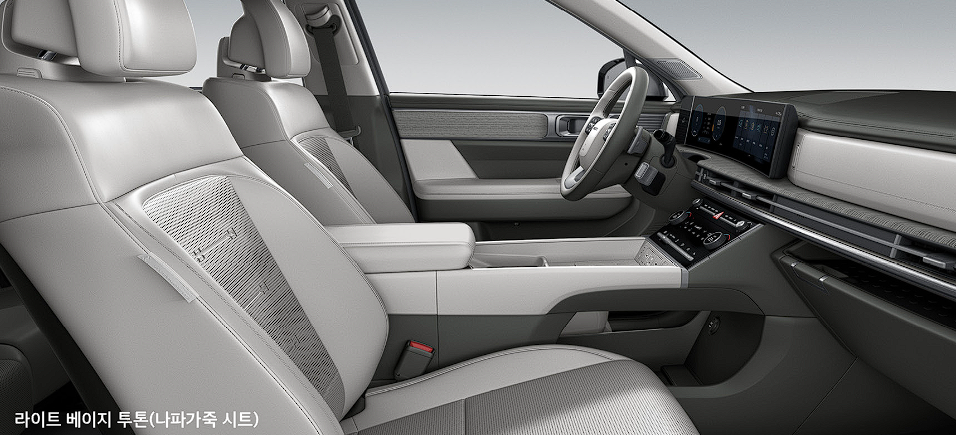 블랙 색상이 다소 칙칙할 수도 있습니다. 화사한 느낌의 싼타페 하이브리드 실내는 라이트 베이지와 그레이 투톤 색상입니다. 이 두 색상은 어느 정도 관리하실 수 있는 분들에게는 추천 색상입니다.
