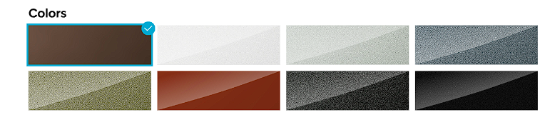 얼씨 브래스 메탈릭 매트, 어비스 블랙, 오렌지, 그레이 메탈릭, 사이버 세이지, 페블 블루, 오카도 그린, 크리미 화이트라는 명칭으로 쉽게 와닿지는 않습니다.