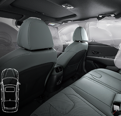아반떼 하이브리드 깡통 에어백은 8개의 에어백이 장착됩니다. 1열 어드밴스, 사이드와 2열 사이드, 전복 대응 커튼 에어백이 기본 장착됩니다.