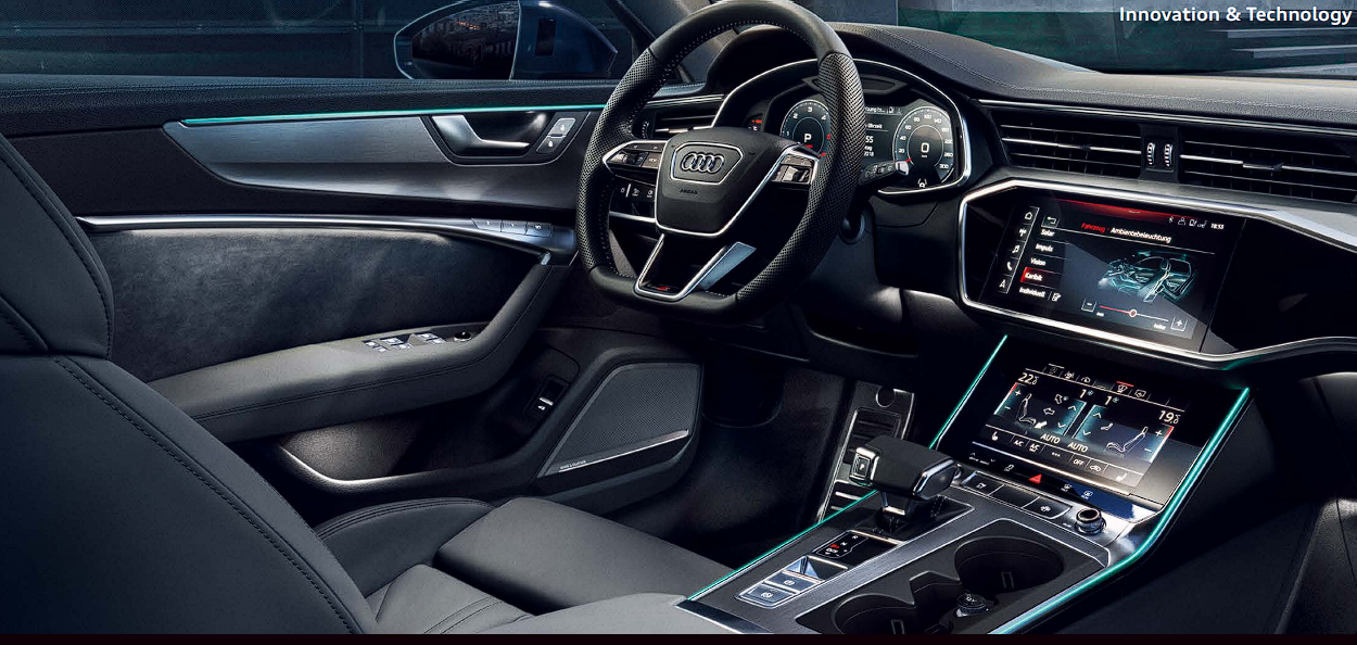 아우디 a7 실내 디자인은 비추얼 콕핏 플러스가 특징입니다. 각종 정보와 엔터테인먼트 정보를 보다 효과적으로 제공합니다.