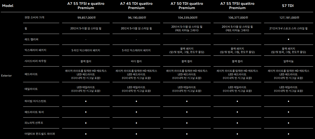 아우디 a7 가격은 공식 가격이며 할인이나 프로모션 혜택 적용 전 가격입니다.