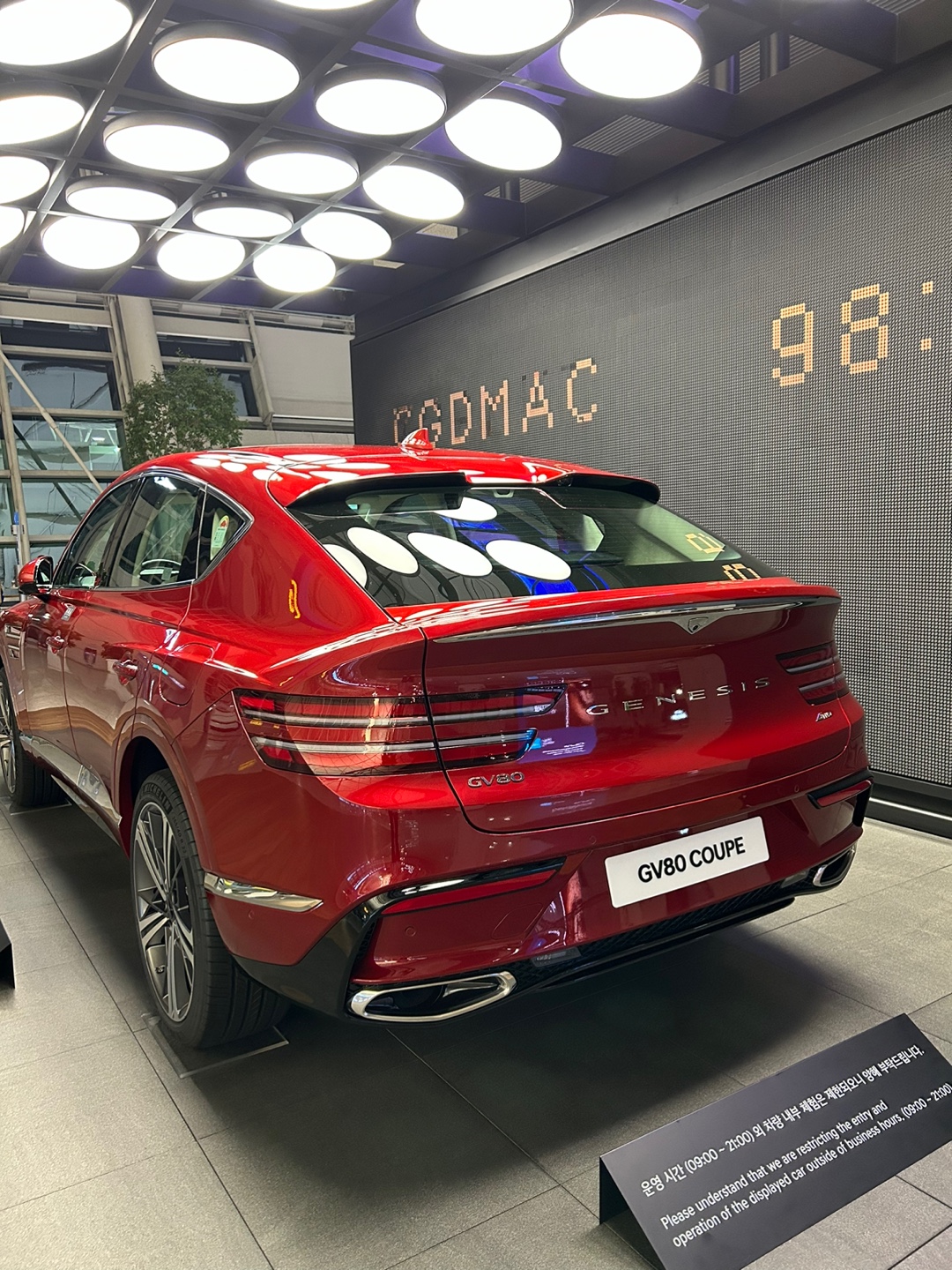 gv80은 쿠페형 suv 차량으로 기존의 gv80 에 비하여 스포티한 모습이 특징입니다. 실내 디자인은 gv80과 유사하며, c필러 디자인과 트렁크 디자인에서 차별점을 두었습니다.