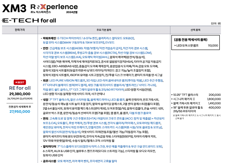 xm3 하이브리드 RE 가격은 27,950,000원입니다.