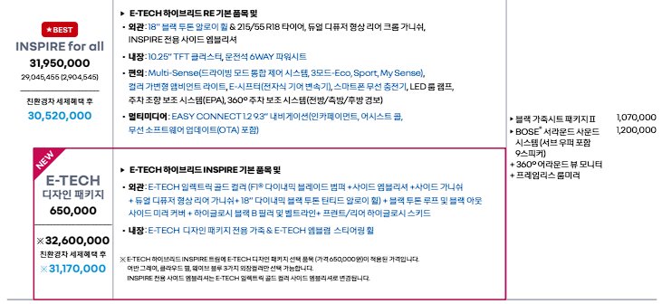 친환경차 세제 혜택 후 가격입니다.