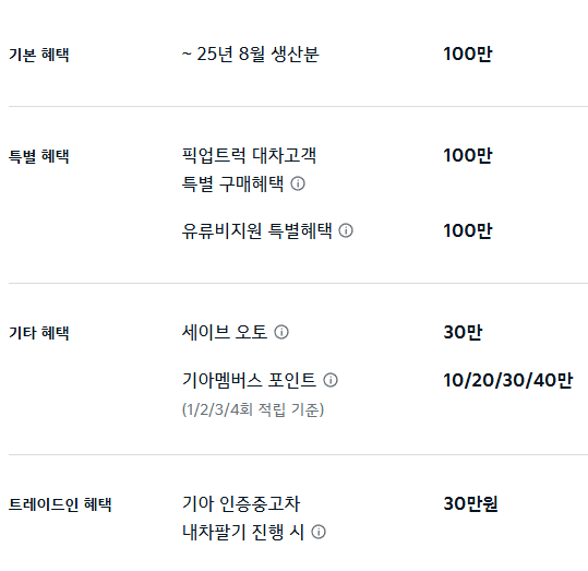 기본 혜택 기아 스토어 방문 혜택 100만 원