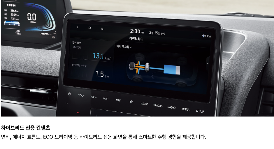 승합의 큰 차체에도 13km/l연비는 스타리아 하이브리드 큰 장점입니다.