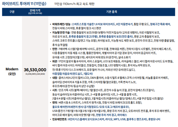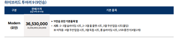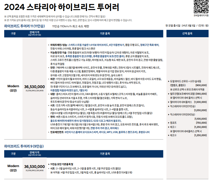스타리아 하이브리드는 9인승과 11인승 가격 동일