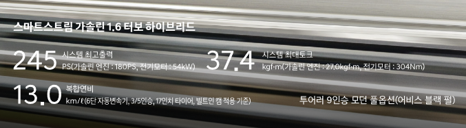 스타리아 하이브리드 최고 출력은 245마력입니다.