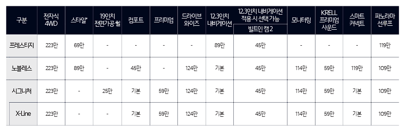 스포티지 하이브리드는 프레스티지, 노블레스, 시그니처
