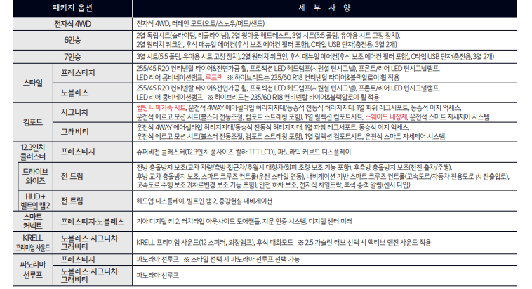 2025 쏘렌토 하이브리드 제원 정보 가격표 카탈로그