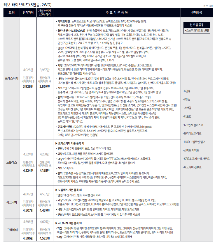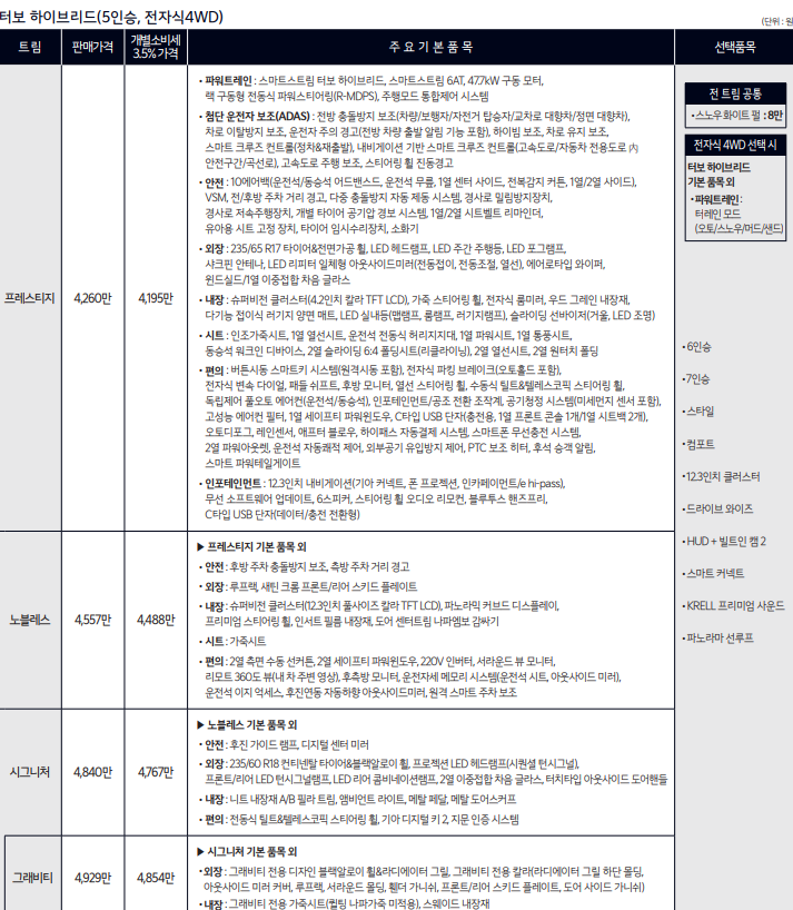 2025 쏘렌토 하이브리드 가격표
