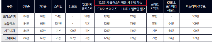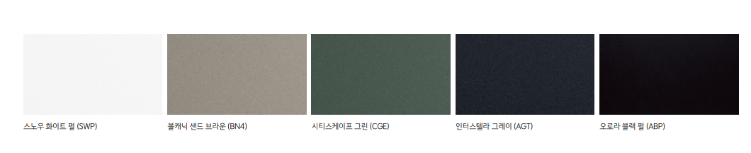 화이트펄, 브라운, 그린, 그레이, 블랙펄 외장색 선택 가능