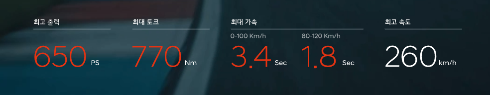 2025 아이오닉 5n은 최고 출력이 650마력입니다. 엄청나게 폭발적인 출력으로 2025 아이오닉 5n의 이름값을 충분히 알 수 있습니다. 이차의 제로백은 3.4초로 고성능 수입 스포츠카에 꿀리지 않습니다.