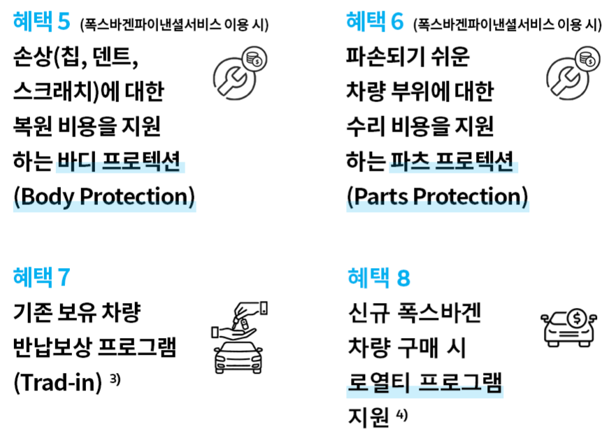 신규 폭스바겐 차량 구매 시 100만 원 상당의 프로그램 지원