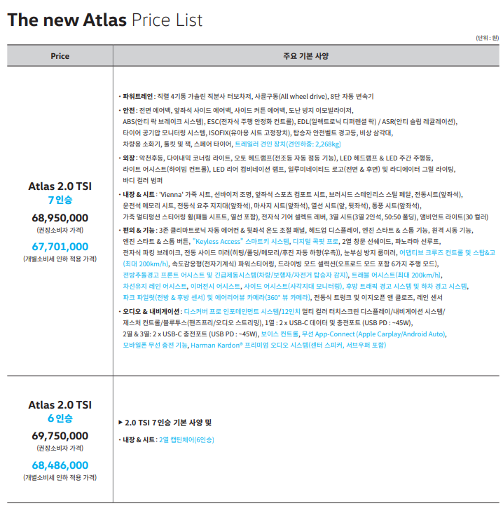 폭스바겐 코리아는 2025 아틀라스 판매를 시작하였습니다.