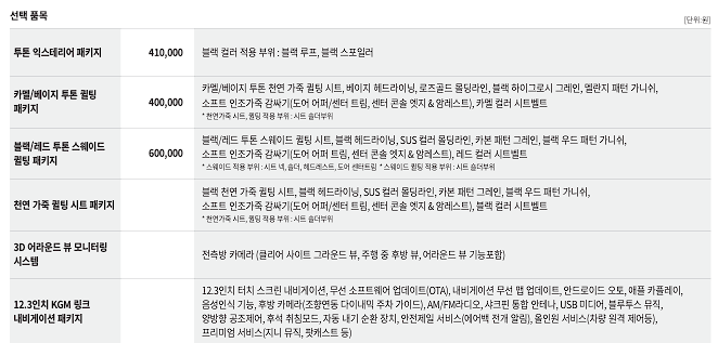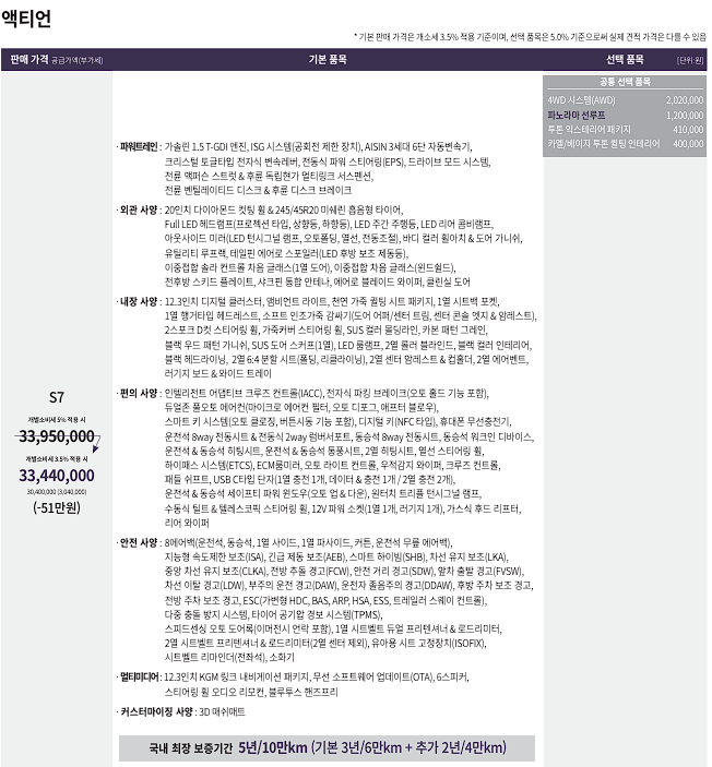 액티언 선루프 120만 원, 4wd 200만 원으로