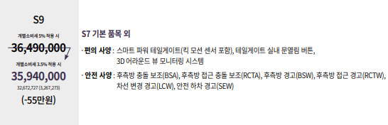 2025 액티언 s7, s9 두 가지 트림으로 구분됩니다.