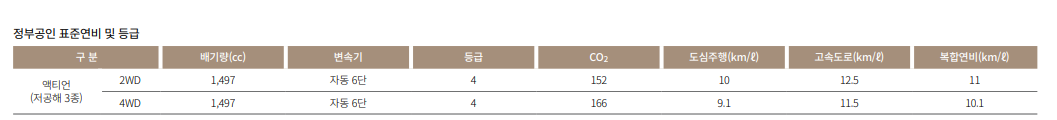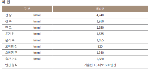 액티언은 1.5 가솔린 터보 엔진을 활용합니다.