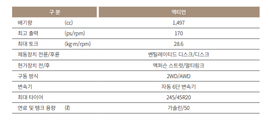 액티언의 엔진 배기량이 다소 아쉽게 느껴집니다.