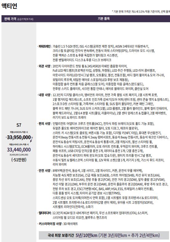 kgm에서는 보증기간을 당당히 늘릴 만큼 2025 액티언에 대한 자부심을 갖고 있는 것으로 보입니다.