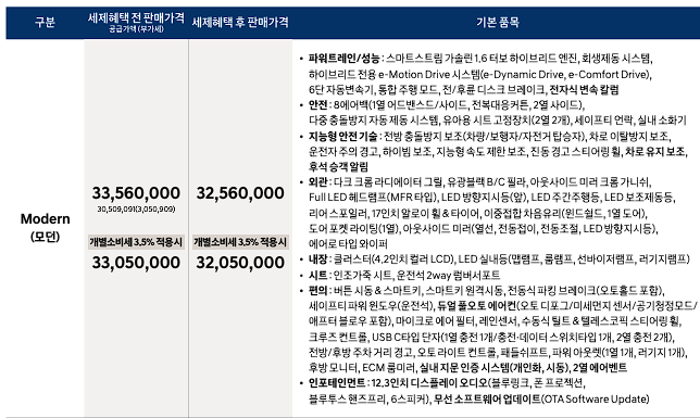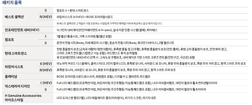 투싼 하이브리드 모던, 프리미엄, 인스퍼레이션