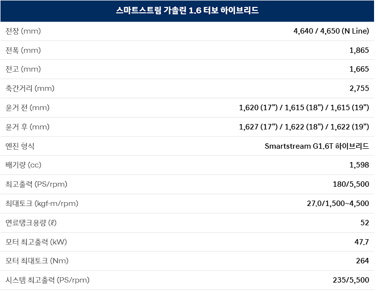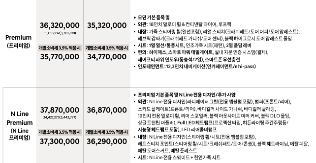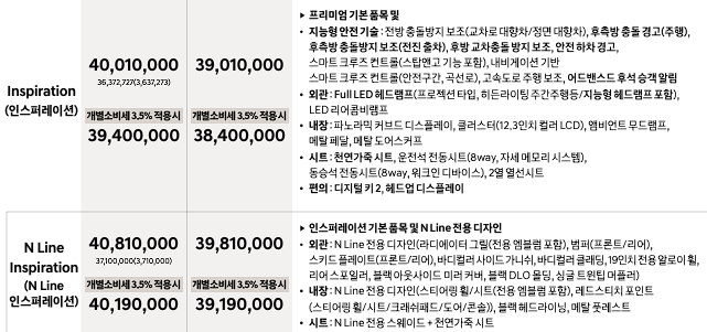 투싼 하이브리드 N라인 가격 3,687만 원 ~ 3,981만 원