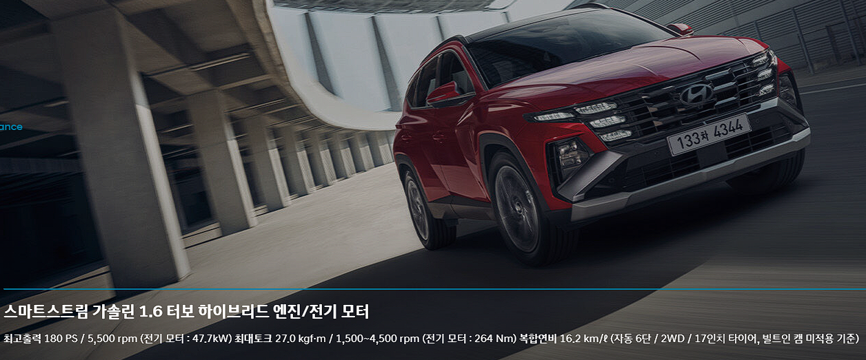 투싼 하이브리드 출시로 중형 suv에 하이브리드 시스템이 탑재되어