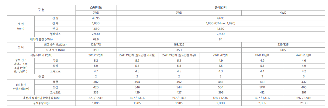 ev6는 주행거리에 따라서 스탠더드와 롱레인지로