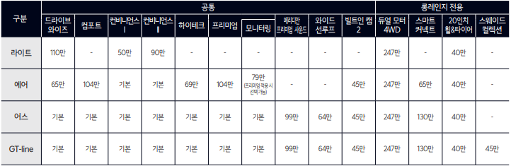 2025 ev6 제원 기본 모델과 gt 라인 차이가 있습니다.